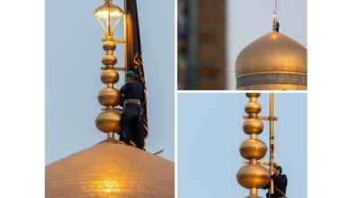 تعویض پرچم گنبد منور رضوی در آستانه شهادت حضرت زهرا (س)
