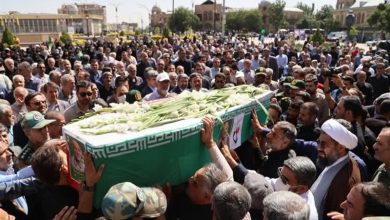 در گرمای 50 درجه، دلها برای یک مرد یخ زد؛تشییع باشکوه پیکر مطهر سردار محرابی در اهواز