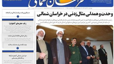 صفحه نخست روزنامههای 12 آذر خراسان شمالی با محورهایی چون ظرفیت تصفیهخانه فاضلاب بجنورد، تحولات دیپلماتیک و نقش میانجیگری ایران، هشدارهای بهداشتی درباره آنفلوآنزا و تأکید بر وحدت نیروهای مسلح…
