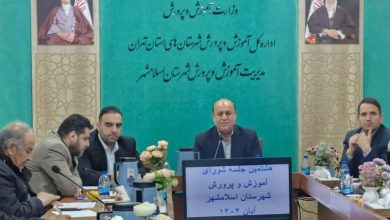 هشتمین جلسه شورای آموزش و پرورش اسلامشهر با تصویب الزام قانونی انبوهسازان برای آغاز ساخت مدرسه همزمان با شروع عملیات مسکنسازی، پرداخت رایگان هزینه سرویس دانشآموزان استثنایی و تقدیر از…