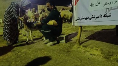 در اردوی جهادی خدمات دامپزشکی در روستای محروم بنبید از دورافتادهترین روستای شهرستان دشتی استان بوشهر واکسیناسیون ۹۰۰ راس دام و آموزش دامداران بهصورت رایگان انجام شد.