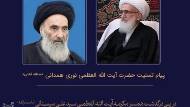 مرجع تقلید شیعیان با صدور پیامی درگذشت همسر آیتالله سیستانی را تسلیت گفت و برای آن مرحوم علو درجات را خواستار شد.