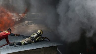 تلاش آتشنشانان برای مهار آتش انبار اسپری و گاز فندک در بابل