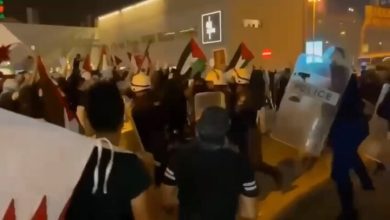درگیری معترضان و نیروهای امنیتی در بحرین در حمایت از غزه+فیلم