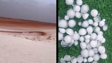 برف و تگرگ شدید عربستانیها را غافلگیر کرد+ فیلم