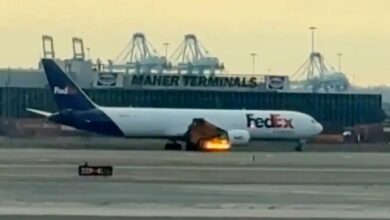 بوئینگ ۷۶۷ آمریکا پس از برخاستن طعمه حریق شد+ فیلم